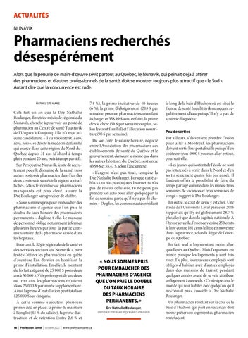 INNOVATION ET INTERDISCIPLINARITÉ À L’HONNEUR NUNAVIK Pharmaciens recherchés désespérément