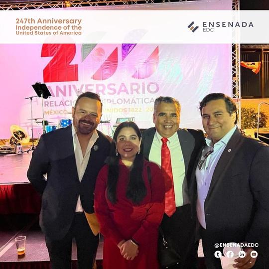 Fuimos invitados a la celebración del 247 aniversario de la Independencia de los Estados Unidos de América, en el Consulado General de los Estados Unidos en Tijuana B.C., y a la conmemoración del bicentenario de las relaciones diplomáticas con México. Agradecemos al Cónsul Tom Reott por su amable invitación a este importante evento. La representación del organismos estuvo a cargo de la directora Kennya Vargas Maldonado.