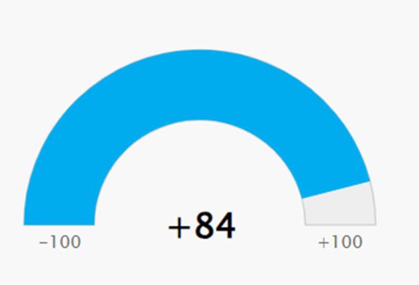 suositteluindeksi NPS on johtava mittari asiakastyytyväisyyden mittaukseen. ETKL:n luku vuodelta 2023 on huikeat 84! (n=412)
