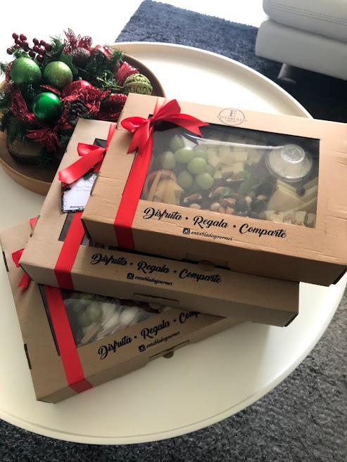 Los pedidos se entregan en jornadas: Mañana (8am a 12m) y Tarde (2pm a 6:30pm). No tenemos horas exactas de entrega en ninguna jornada. El cliente puede recoger el pedido si lo desea. El color de la caja, cinta y diseño del entablado puede variar.