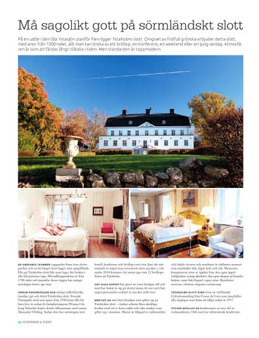 EN ANKFAMILJ KOMMER vaggandes fram över slottsgården och en bit längre bort ligger sjön spegelblank. Här på Yxtaholms slott blir man lugn, det brukar i alla fall gästerna säga. Huvudbyggnaderna är från 1700-talet och innanför dessa väggar har många storslagna fester ägt rum. GENOM ÅRHUNDRADEN HAR många inflytelserika familjer ägt och drivit Yxtaholms slott. Svenskt Näringsliv stod som ägare från 1948 fram tills för bara fyra år sedan då fastighetsägaren Wonna I de Jong Schaefer köpte slottet tillsammans med sonen Alexander Östling. Sedan dess har satsningen mot