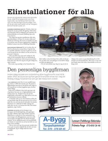 Den personliga byggfirman Anders Hägg började som snickarlärling på en byggfirma för snart 40 år sedan. Efter att ha provat sig fram genom branschen driver han i dag sitt företag A-Bygg Torpshammar som gör det mesta inom snickeri. under flera år som anställd innan jag i slutet av 1980-talet startade eget. På grund av lågkonjunktur lade jag ner den firman efter några år och tog jobb på en annan byggfirma igen, berättar Anders Hägg. Sedan åtta år tillbaka är han dock egen igen och i dag känner han inte ens av lågkonjunkturen som många pratar om. Troligtvis beror det på den noggrannhet och kvalitet som alltid utlovas och som gör att kunderna kommer tillbaka. – Vi försöker sätta oss in i hur kunderna vill ha det och jag brukar säga till min personal att så de vill att andra ska vara mot dem ska de behandla våra kunder. Dessutom ser vi alltid till att hålla ordning och städa efter oss när vi är hemma hos folk. Det brukar uppskattas, säger Anders. – JAG ARBETADE