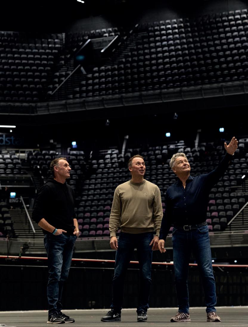 gewerkt, als het podium zo is afgewerkt dat je er niet meer onderdoor kunt kijken, dat soort kleine details die in eerste instantie niet opvallen maar wel de totaalbeleving verhogen. En artiesten voelen dat ook. Als hun kleedkamers tiptop in orde zijn en als een thuis aanvoelen, komt dat zonder meer hun optredens ten goede. En ook hier geldt dat geen vraag te gek is. Onlangs trad een grote artiest op in de Ziggo Dome en daarvoor waren heel specifieke kleurwensen voor de kleedkamers. Dan zorgen wij dat alles in die kleuren wordt opgeleverd. Vervolgens wilde men last minute in alle kleedkamers ook nog mobiele airco hebben. Veertig minuten later stonden we daarmee aan de poort, omdat we die direct uit voorraad kunnen leveren.”