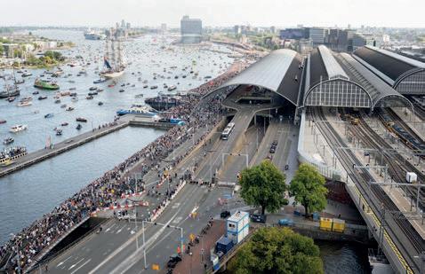 besteding wonnen we. Tijdens de laatste editie in 2015 was het juist in die gemeentes een redelijke chaos, met allemaal wildparkeerders tijdens de SAIL-IN en -OUT. Dat moest deze editie worden voorkomen. Het grote verschil is enigszins bureaucratisch. Voor die doorkomstgemeentes is SAIL namelijk geen evenement. Dus is er geen evenementenvergunning en moet je het als een probleem in de openbare orde beheersen. Daarvandaan is het geëxplodeerd en hebben we ook Gemeente Amsterdam ondersteund met het evenement SAIL. Er moest nog iets geregeld worden voor afvalbeheersing en -management, EHBO, toiletten, hekken, camera’s, parkeerplekken, pendelbusvervoer, ticketing, crowdmanagement rondom de ponten over het IJ en rondom Centraal Station Amsterdam, en naast de Stichting heb je dan ook te maken met de Gemeente Amsterdam én het bestuur van de verschillende stadsdelen.”