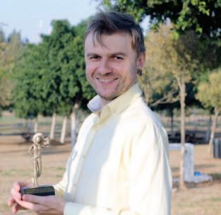 Israeli filmmaker Arti Savchenko with his Best College Short award, the “Gwen” trophy.