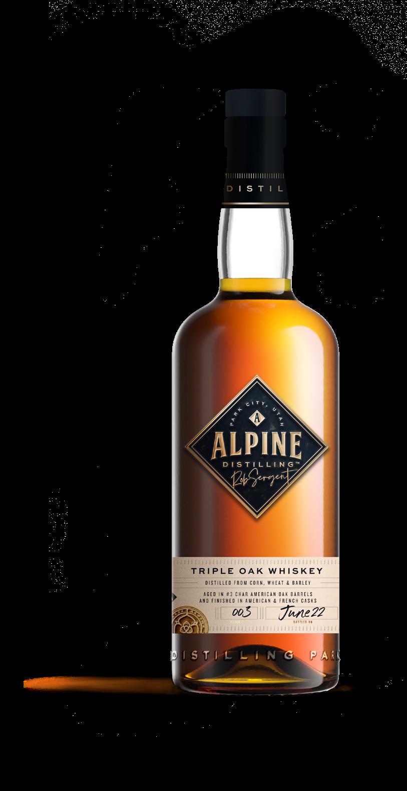 “Alpine Distilling’s Triple Oak Whiskey explodes with layers of complexity, revealing notes of dried figs, dates, dark chocolate, vanilla bean, creamy nugget, and toasted hazelnuts with just a hint of maple syrup sweetness. This sophisticated dram is best savored neat with a splash of water, large cube of ice, or fashioned into the perfect Old Fashioned. Do yourself a favor, this whiskey is not to be missed!”