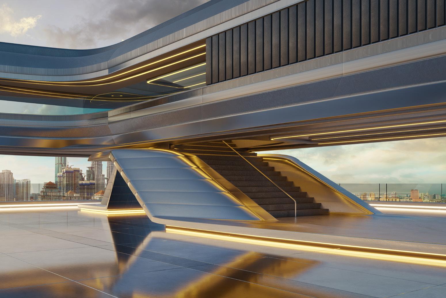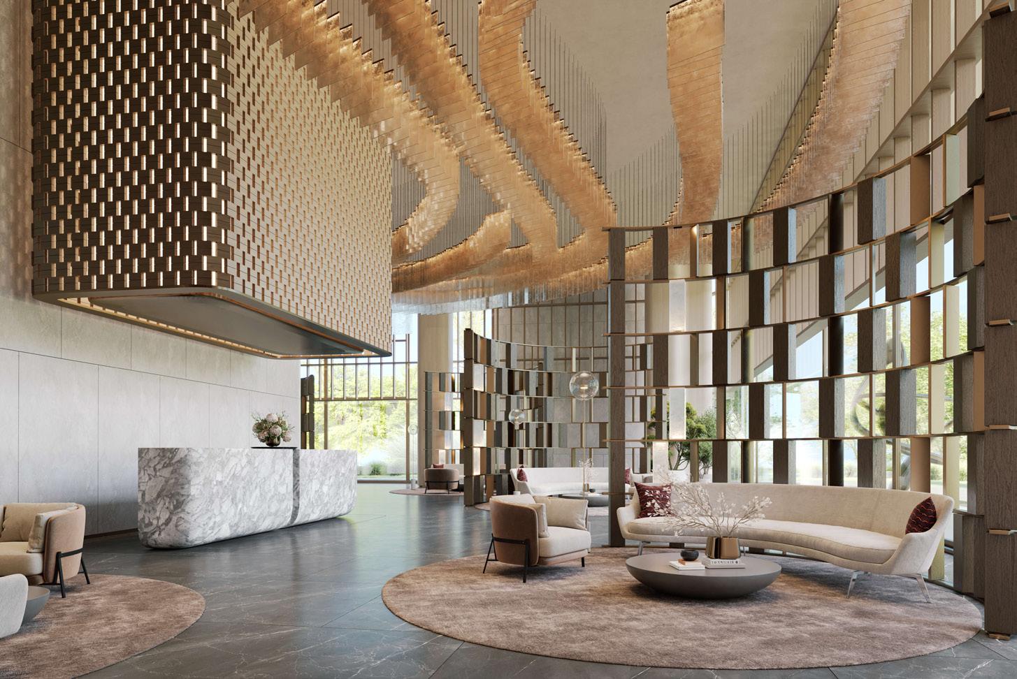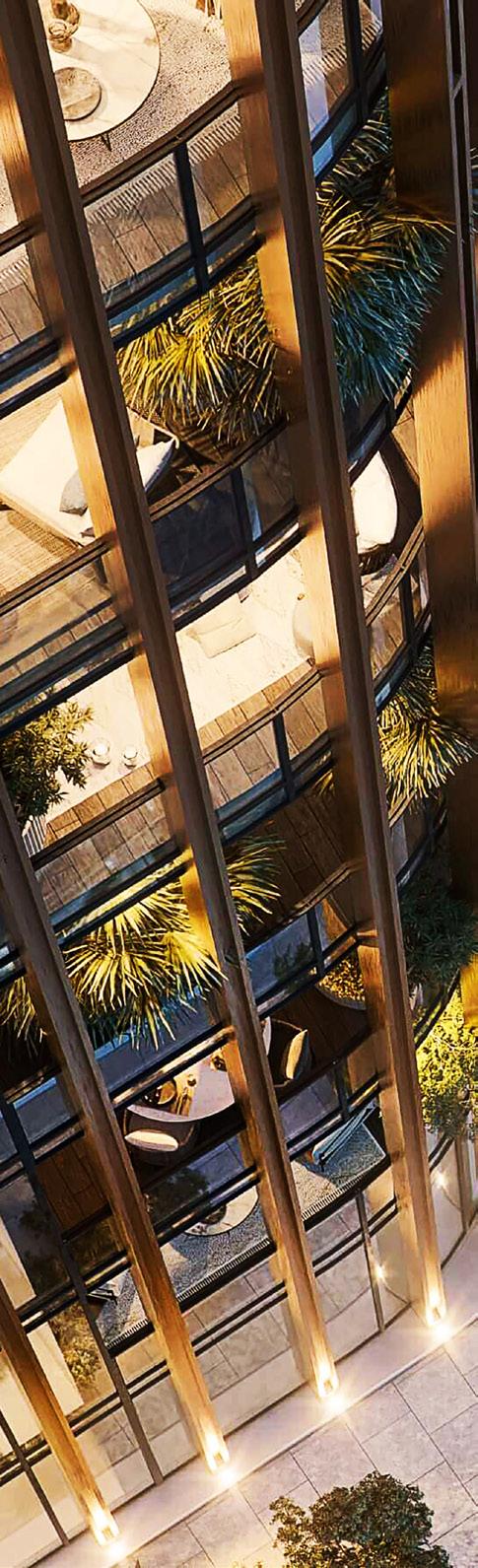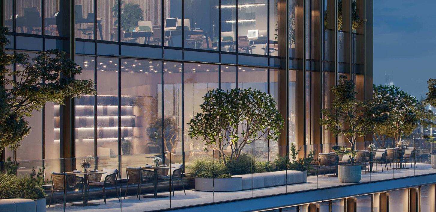 > Recreation: Rooftop infinity pool, wellness center, yoga studio, private dining.