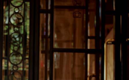 e a sensação de pé-direito maior. Para ressaltar a escada que leva ao piso superior, foi usado o porcelanato marmorizado Calacata Gold, 72x72 cm, tanto nos degraus como na parede, originando uma estética sofisticada e elegante. Abaixo da escada criou-se uma adega com nichos para garrafas de vinho. Detalhes, como o vidro Reflecta Gold e a adega refrigerada, contribuem para a harmonização e a funcionalidade deste ambiente.