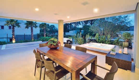 Neste projeto, o porão de uma casa foi transforma do em área de lazer, com direito a SPA e um espaço gour met, com surpreendentes clara boias. O arquiteto teve o desafio de incorporar vários elementos distintos que conferem aconche go e praticidade aos ambientes.