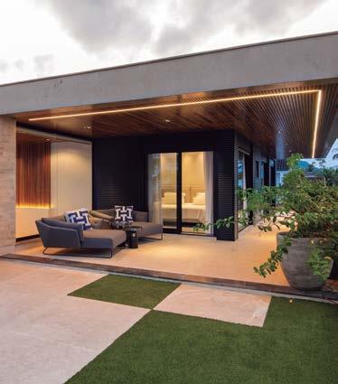 Carlos Pardal carlospardal.com.bronde o verde natural é soberano. Grandes espaços são a tônica no interior, com conforto e sofisticação na medida. As divisórias e portas em vidro também intensificam a sensação de amplitude e de total conexão entre os ambientes.