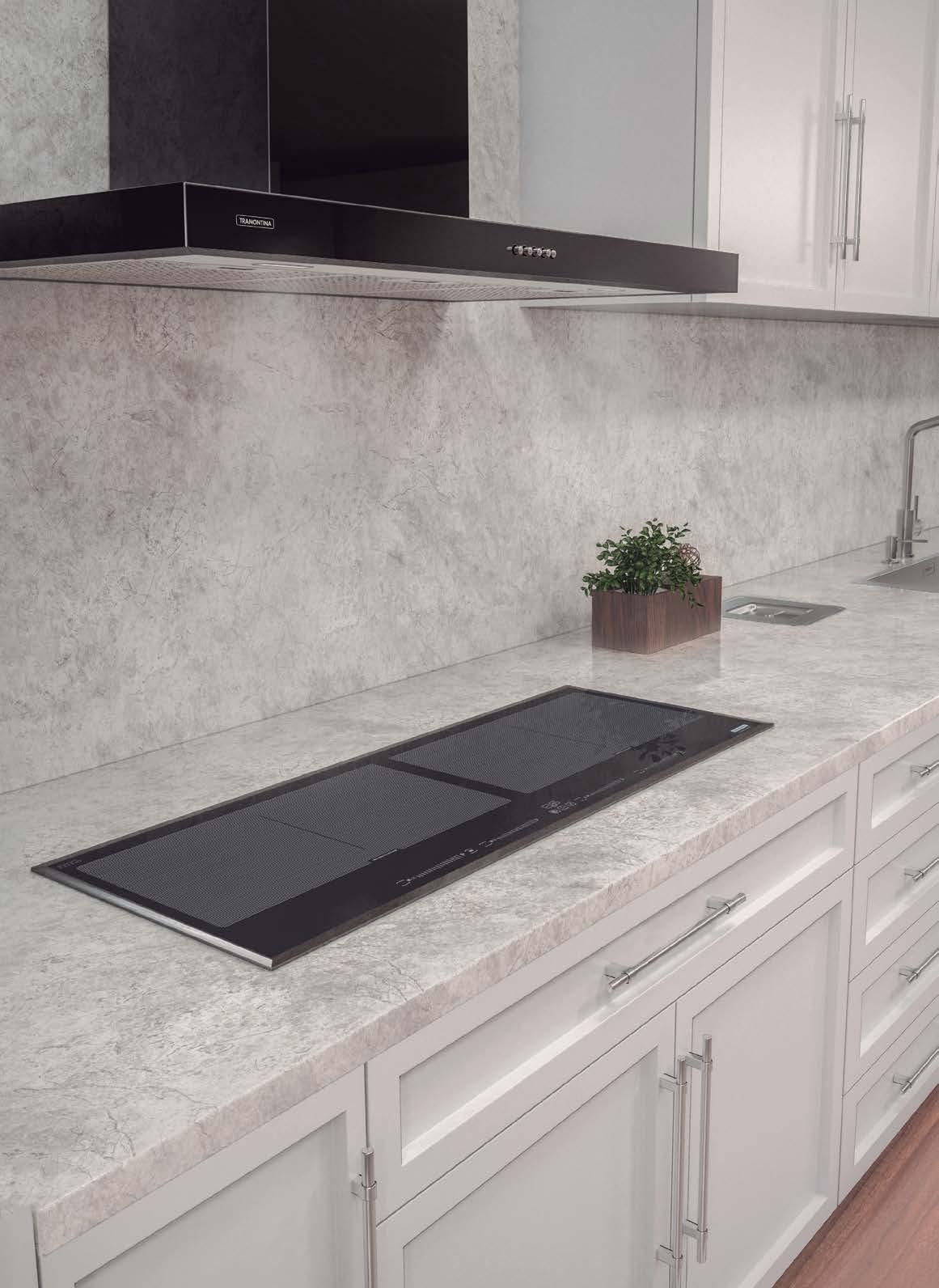 m dos principais desejos do cliente era aumentar o espaço (que agora chega a 13 m²) e obter um ambiente mais moderno. Para isso, o projeto separou a área de bancada da área de armários, garantindo mais amplitude. Outro detalhe importante são as réguas no piso no assentamento espinha de peixe (régua Carvalho Natural 26x106 cm reta Biancogres). A disposição do piso cria um direcionamento que guia o olhar e valoriza o comprimento do ambiente. O pé-direito baixo era um desafio, superado com a escolha das cores claras, que geram sensação de amplitude. A profissional também optou por não usar armários superiores sobre a bancada. A harmonia nos acabamentos usados, em diferentes formatos, alcança o aspecto moderno desejado pelo cliente. Entre as peças eleitas estão o porcelanato Calacata Lux 82x82 cm Biancogres e o revestimento Paris Blanche 10x20 cm Portobello.