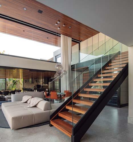 Carlos Pardal carlospardal.com.bronde o verde natural é soberano. Grandes espaços são a tônica no interior, com conforto e sofisticação na medida. As divisórias e portas em vidro também intensificam a sensação de amplitude e de total conexão entre os ambientes.