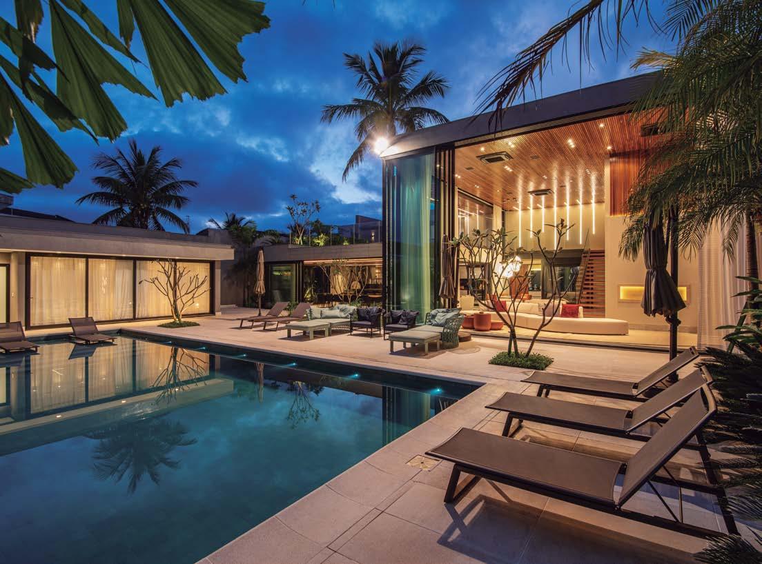 Carlos Pardal carlospardal.com.bronde o verde natural é soberano. Grandes espaços são a tônica no interior, com conforto e sofisticação na medida. As divisórias e portas em vidro também intensificam a sensação de amplitude e de total conexão entre os ambientes.