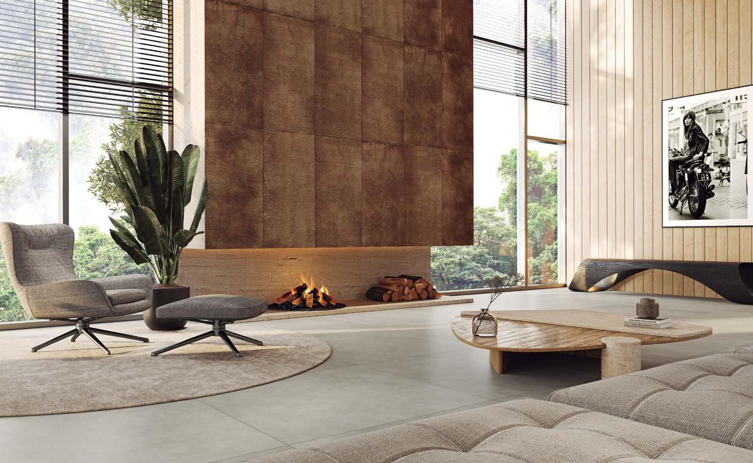 GAUDI PORCELANATO lança o Oxidart Decor, um produto inspirado no aço corten, com características únicas, como o seu aspecto enferrujado e o tom avermelhado. A peça é oferecida em formato 61x120 cm e tem como diferencial o contraste entre o fosco e o brilhante, o que proporciona um visual contemporâneo. Além disso, possui um sutil relevo, onde a textura granilhada, combinada com o polido suave, cria um contraponto ideal para obras cheias de originalidade. Esse acabamento Marmorato (MR) consiste em uma camada de granilha no baixo-relevo e polimento no alto-relevo, conferindo ao produto uma estética exclusiva e diferenciada por seu brilho na superfície rústica.