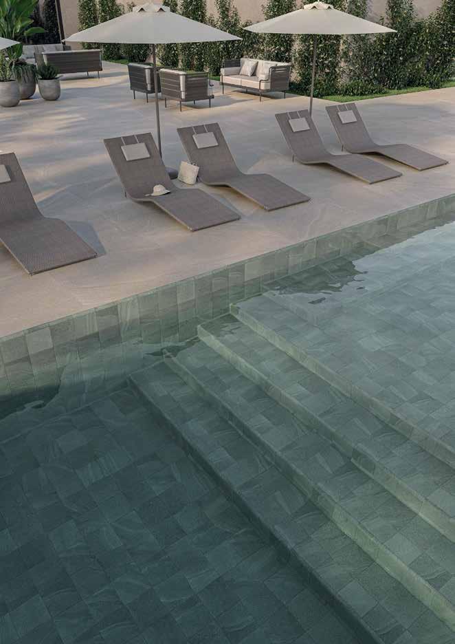 PORCELANATO EXT+ Ainda mais segurança para bordas de piscinas e rampas descobertas.