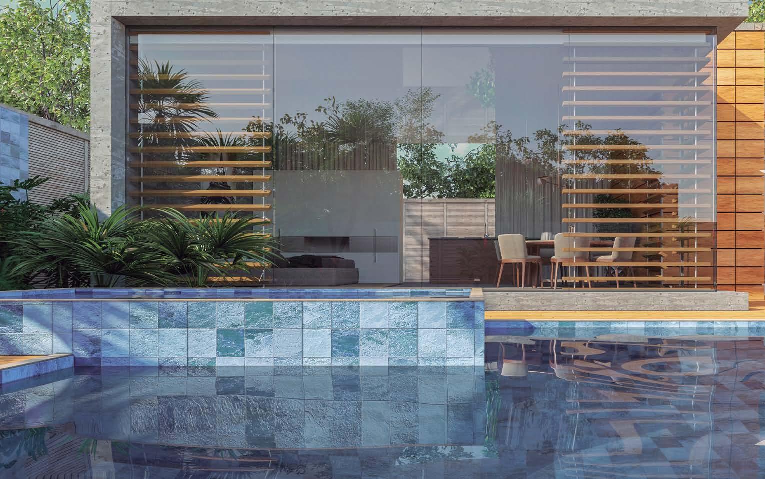 A VIA ROSA apresenta o porcelanato retificado Petra Blue, da linha Stone, que transforma qualquer espaço sem vida em um ambiente totalmente exclusivo e cheio de personalidade. Inspirado na pedra vulcânica hijau, que é uma tendência em projetos arquitetônicos modernos. Disponível no formato 72x72 cm, pode ser utilizado em áreas internas, como elemento de destaque, mas é ideal para projetos de piscinas, espelhos d’água e áreas molhadas em geral. Com textura granilhada, tem uma maior resistência ao escorregamento.
