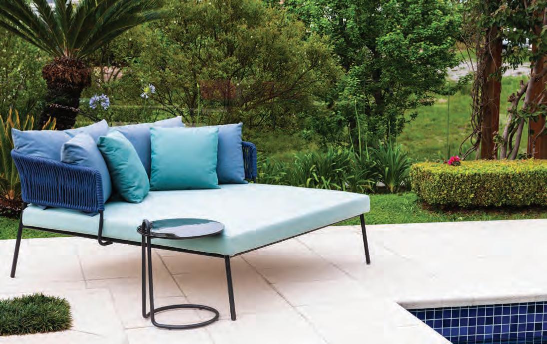 A Soul, uma coleção de móveis outdoor, é composta por diversas peças: sofás de 2 e 3 lugares, poltrona, cadeira, chaise namoradeira, ninho, aparador, mesa de