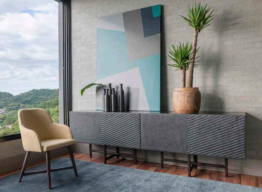 El diseño Saccaro, con sus materiales y texturas naturales, es destaque en la decoración del Penthouse