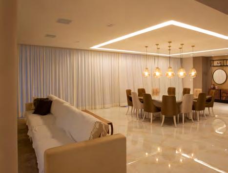 Já o projeto luminotécnico, com vários focos, possibilita a composição de uma atmosfera intimista, promovendo a paz interior e favorecendo o bem-estar dos moradores.