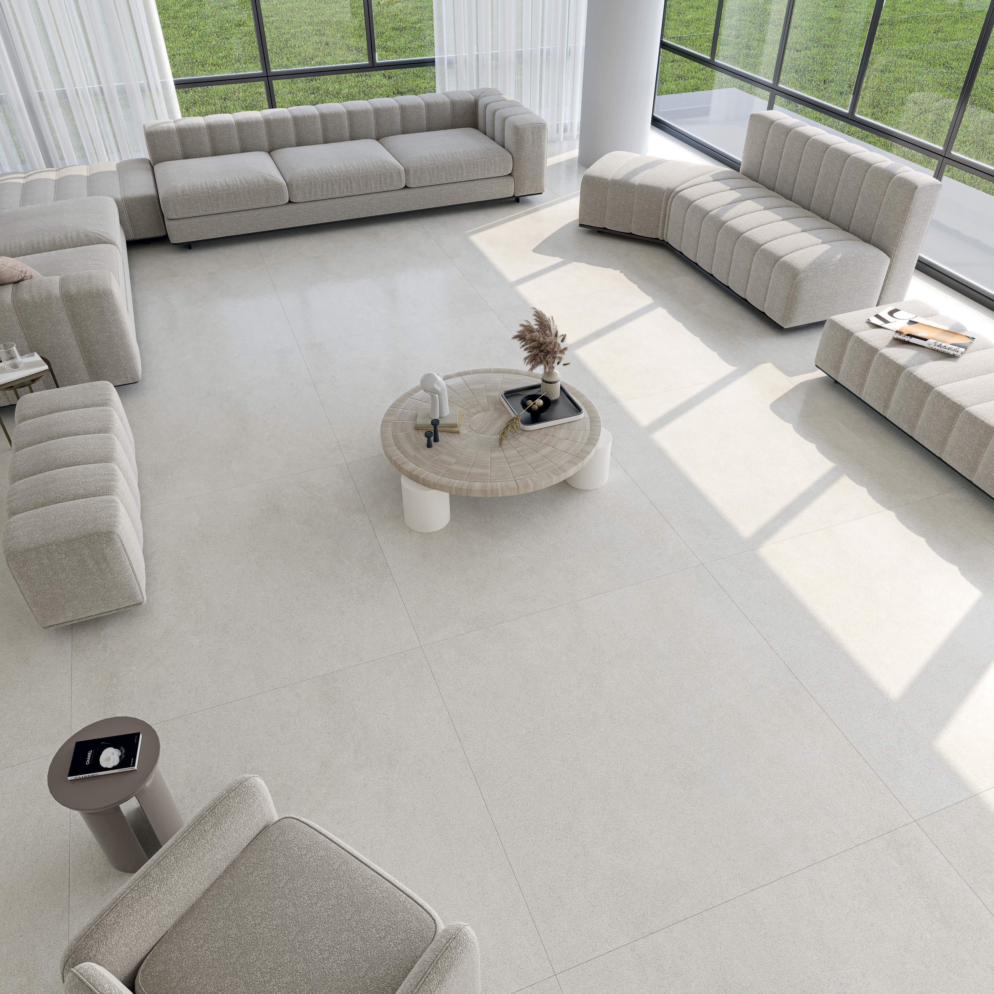 O piso Galileu bege, em grande formato, 120x120 cm, se espraia por toda a residência numa paginação perfeita. Sem reflexo e numa cor imparcial, forma a base neutra para receber a decoração
