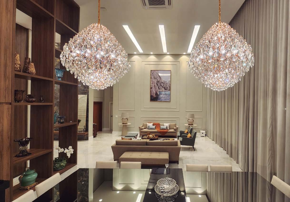 s clientes buscavam um projeto que oferecesse decoração harmônica para um espaço integrado por sala de estar, jantar e cozinha, transformando-o em uma área suave e acolhedora. Com o objetivo de acentuar a leveza da proposta, a profissional optou por um estilo mais clean, com tons neutros, madeira, vidro. O pé direito duplo e as amplas aberturas agregam sofisticação.