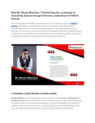 Entrepreneur One Magazine showcases the wonderful stories of C-Suit business leaders, entrepreneurs and learners, publishing insightful and inspirational Interviews, stories, ideas, views and best practices.