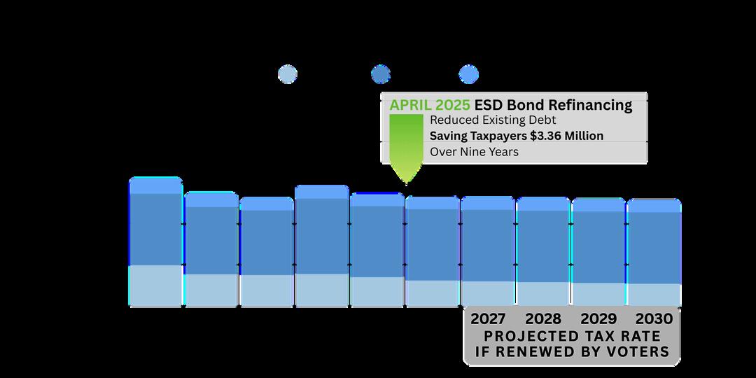 This decrease is also due to the April 2025 bond refinance. ESD refinanced the District’s outstanding 2015 Bonds This successful refinancing reduced the District’s existing debt and will save taxpayers $3.36 million over the next nineyears