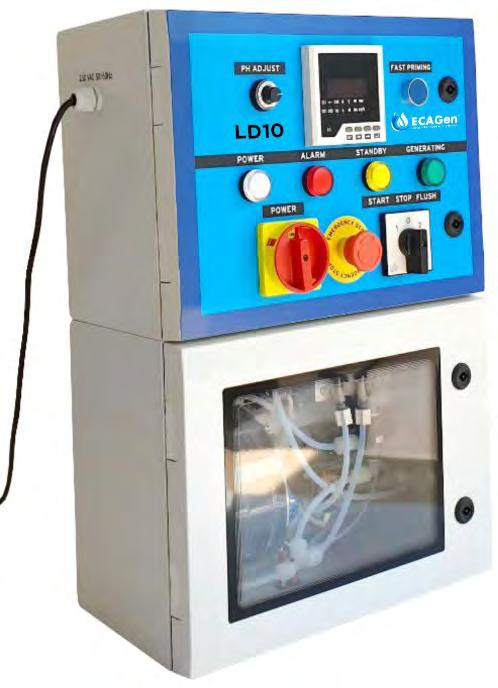 System Max Output (Liters) 24/7 Production 500ppm Anolyte/HR 28 500ppm Anolyte/Day 336 500ppm Anolyte/Week 2352 500ppm Anolyte/Month 10,080 *Catholyte/HR 2 *Catholyte/Day 24 *Catholyte/Week 168 *Catholyte/Month 722