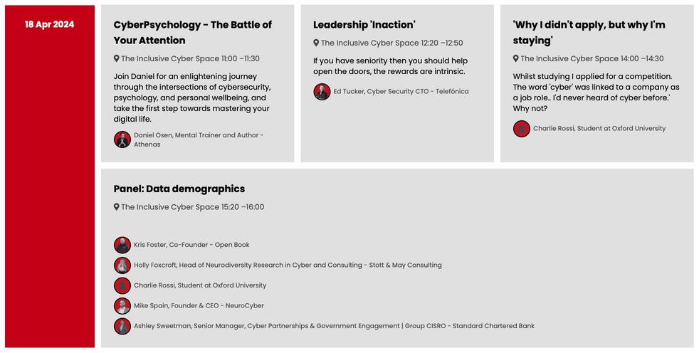Across two immersive days, The Inclusive Cyber Space is designed to provide actionable insights for implementation at work, engaging activities for selfknowledge, and opportunities to hear from industry leaders. Drawing from lived experiences and research, the focus is on the vital link between cultivating personal resilience and bolstering overall business security governance.