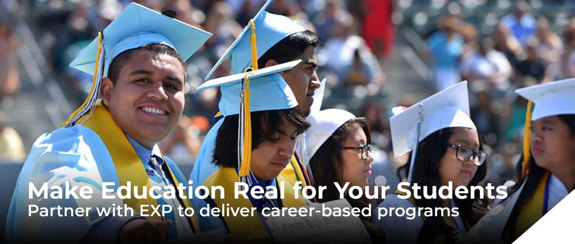 Today, EXP helps a broad array of schools and communities from large public-school districts to innovative charters and private schools make their vision for career-based learning a reality Our programs are made available to more than 8,200 students across 13 schools in five districts throughout greater Southern California