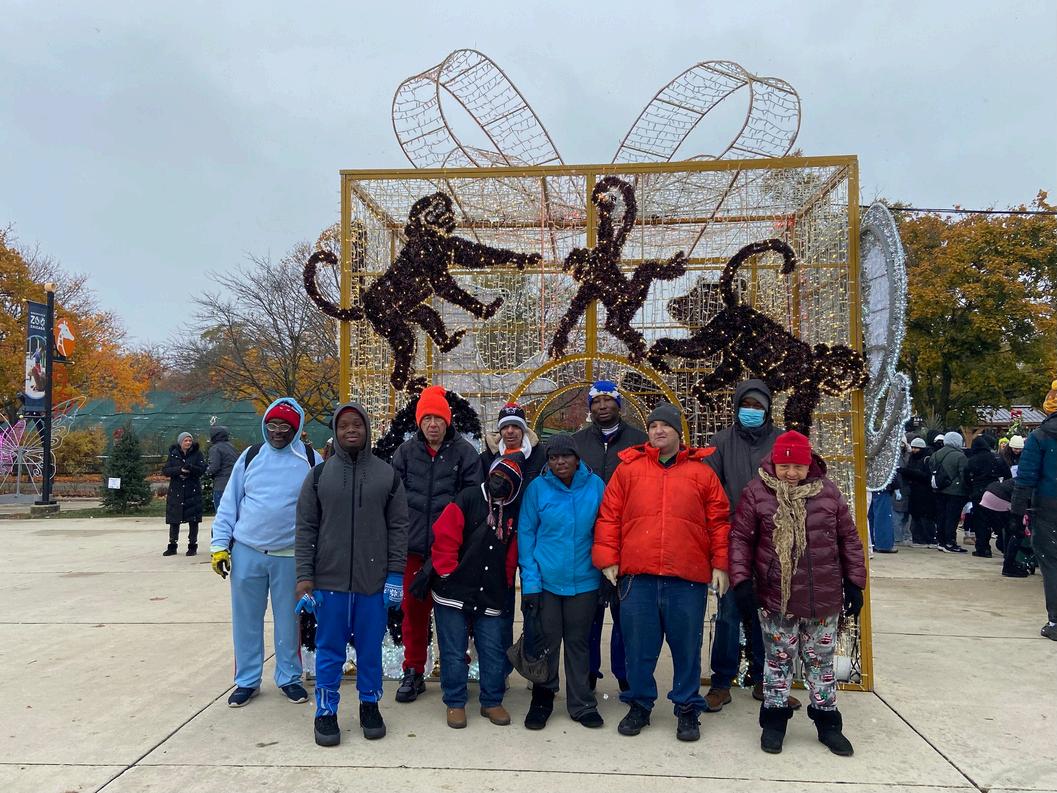 I went to Brookfield Zoo. I put the Christmas ornaments on the Brookfield Zoo tree, the green tree. And then I went to the bathroom, washed my hands, and then I went to the restaurant. I had root beer pop, and I bought a chocolate cookie! I take it home. Jenny told Nikko put the popcorn back. I had root beer, pop, french fries I had a nice time Put the Christmas ornaments on the tree It was cold out there! I saw the monkey. We had fun. We was walking around. We saw the butterfly lights. I saw the Santa. I saw the bird. And then after we came and saw the peacock The guy was selling donuts and coffee. I want to go again next year.