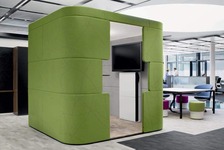 This attractive meeting setting creates a lounge like atmosphere that promotes team spirit to aid the collaboration process. The upholstered Toguna elements are probably the most striking members of the PARCS family. They are a visual highlight in any office and symbolise a break with rigid structures. Furthermore, the Toguna elements are completely free-standing, meaning that they do not need to be drilled or fixed to the building’s structure.