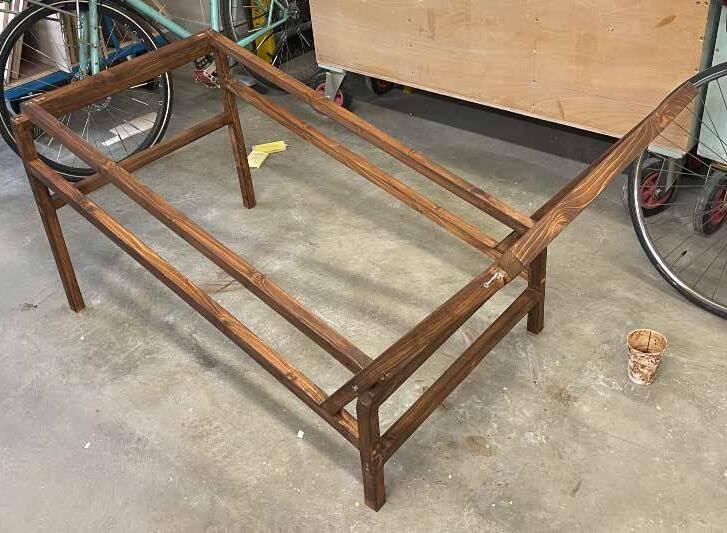 I waxed the dyed pine frame and polished it with dry cloth to give it a shiny finish.