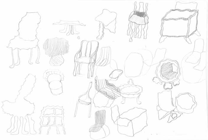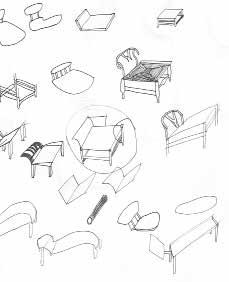 To create a critically designed chair, I explored two directions that informed each other. I ideated dining chairs with elements of the psychoanalytic couch and lounge chairs with elements of the dining chair, ultimately choosing the more promising direction for further development. I researched the typical Phychoanalytic couch. From real therapy places, they are usually upholstered, looking comfortable.