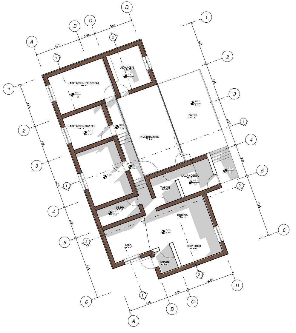 Según el análisis de nuestra carta solar, la construcción de la vivienda es Noreste-Suroeste con45°conelfindelosmesesdemastemperatura controlarloconlaayudadelvientoylosmesesmas fríos,tenerradiacióndirecta.