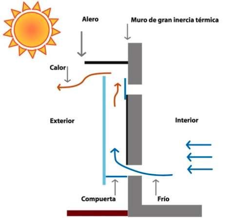 Utilizacióndemurostrombes captadoresdecalorquepermitan brindarmayorconforten temperaturasbajas.