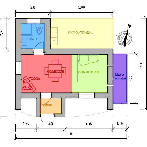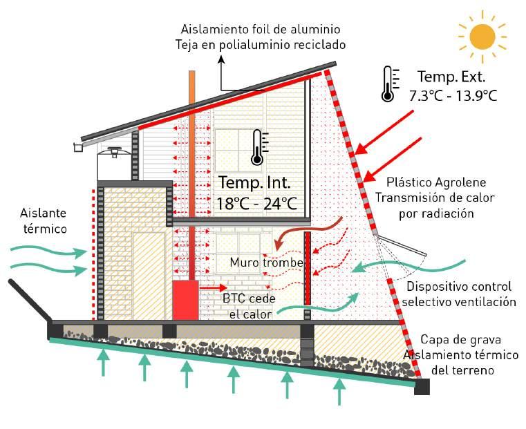 Adecuado aislamiento térmico interno con distintas estrategias de captacion solar.