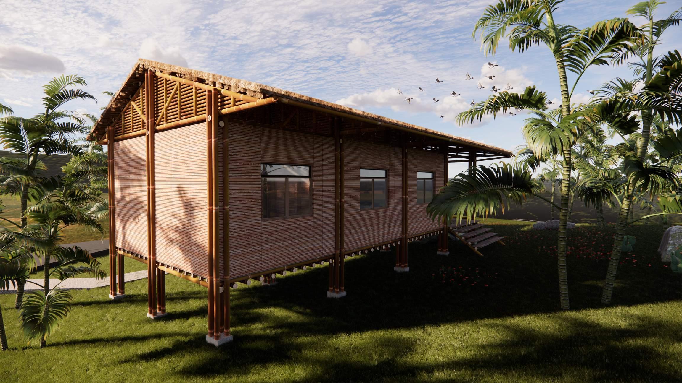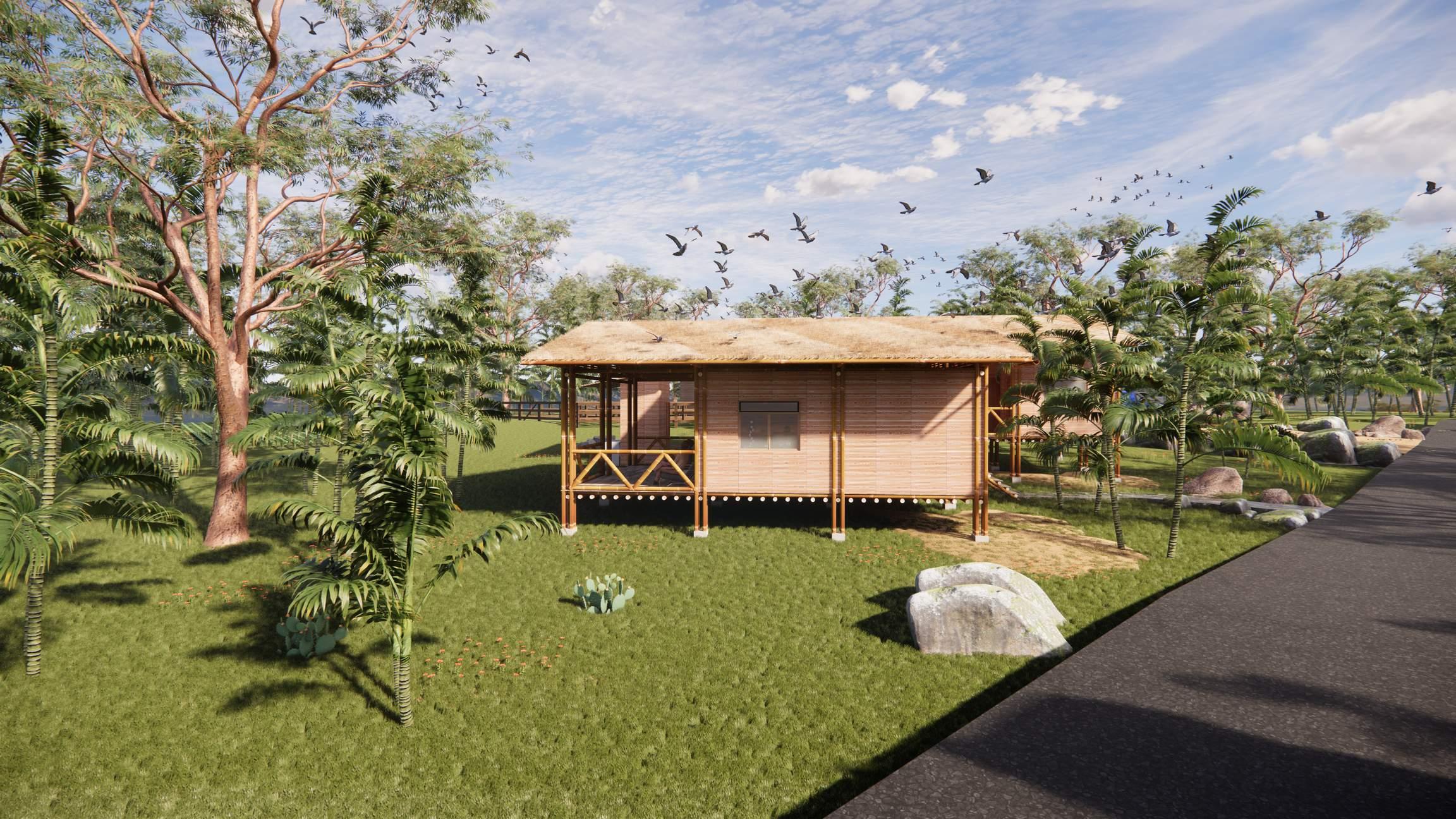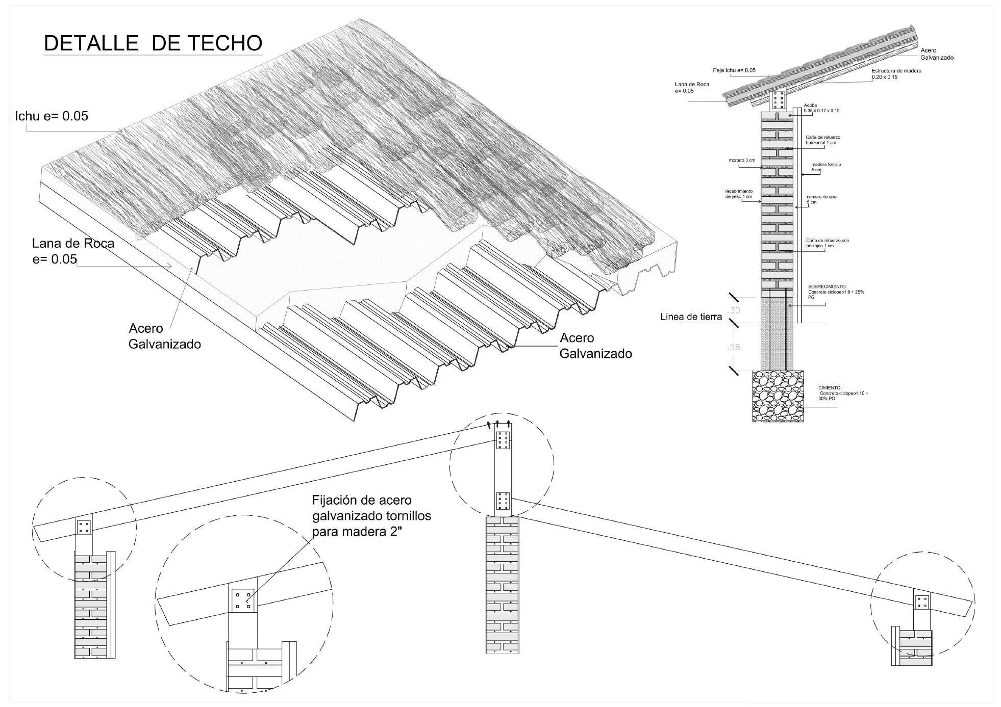 Lacubiertadelproyectoseutilizarámaterialestípicosdela zona, siendo la cubierta de paja y el bambú para la estructura.