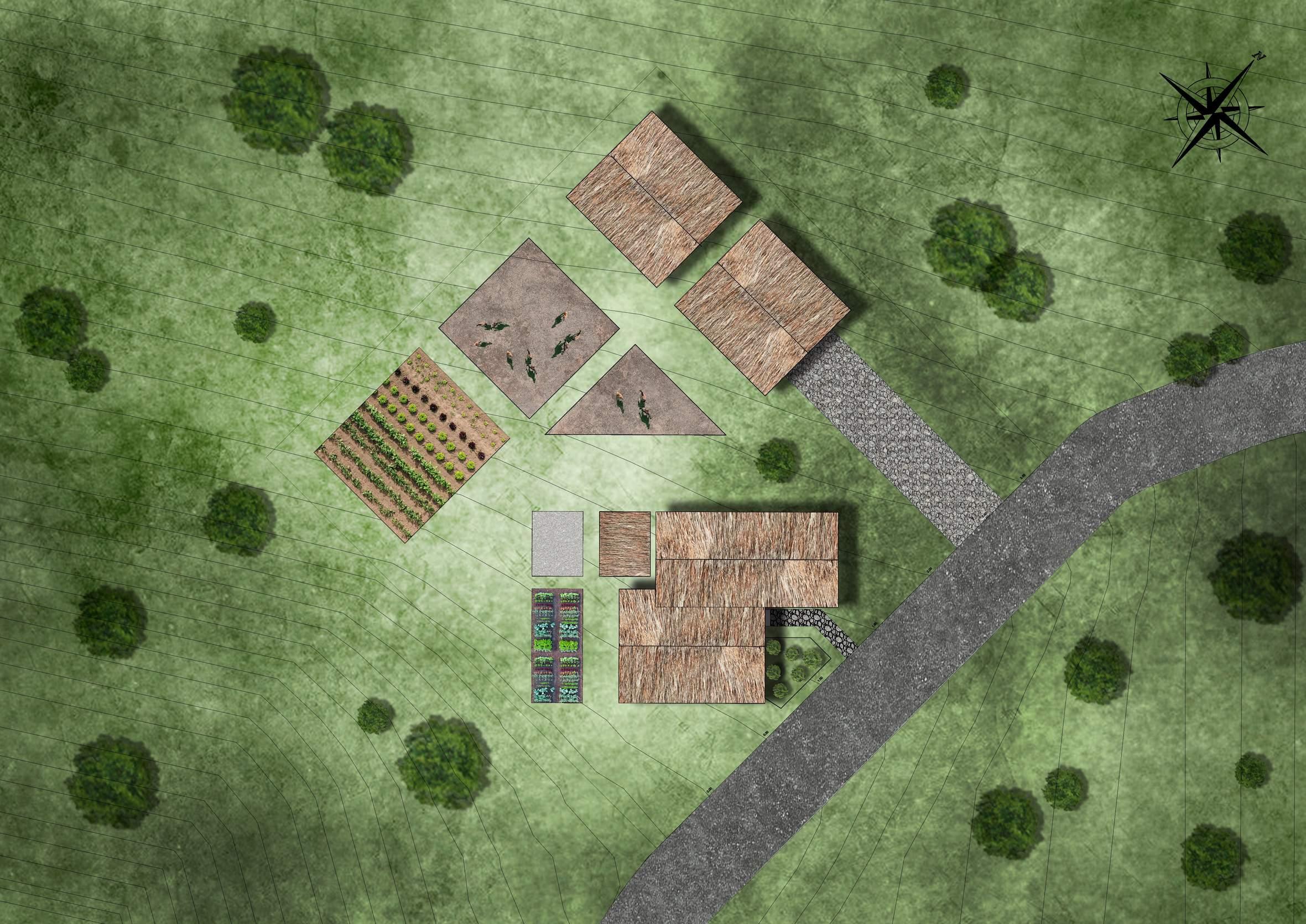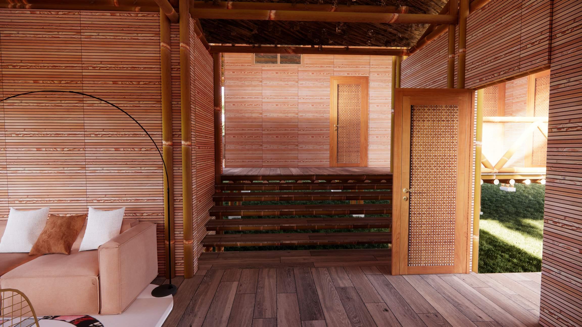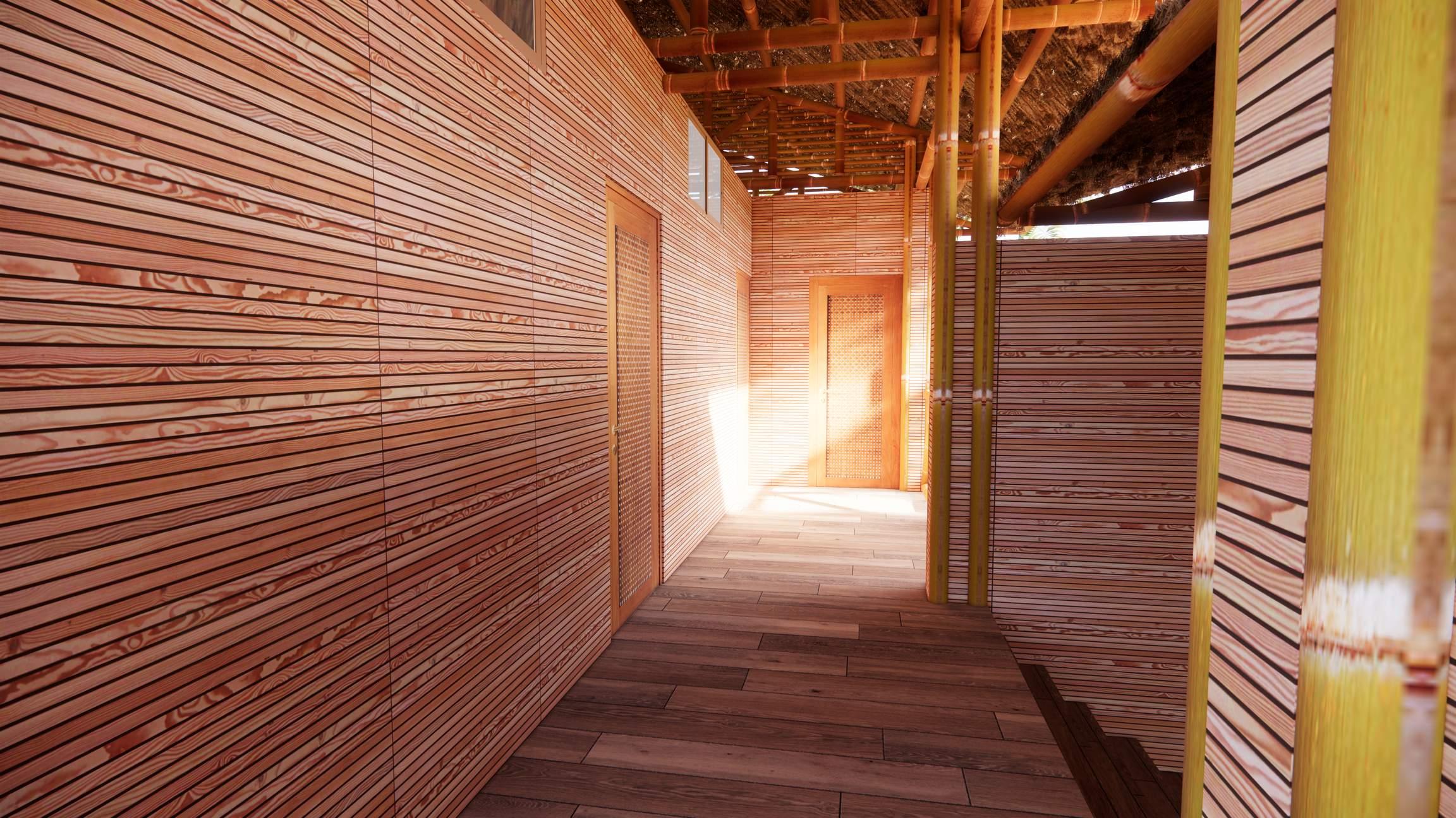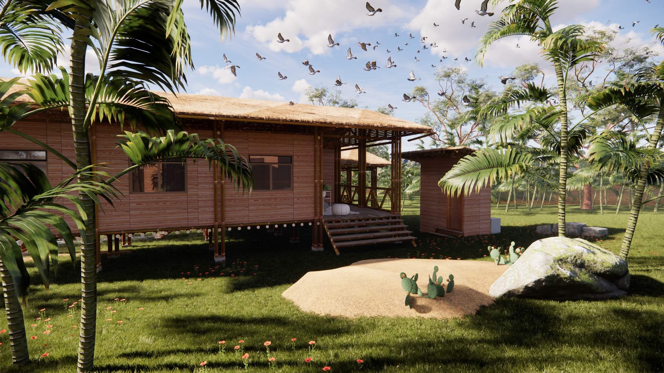 Lacubiertadelproyectoseutilizarámaterialestípicosdela zona, siendo la cubierta de paja y el bambú para la estructura.