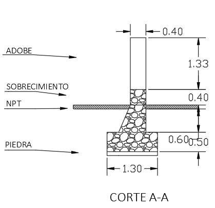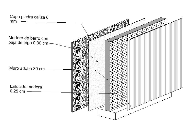 Muros con grosor de 30 cm a base de adobeypiedra.