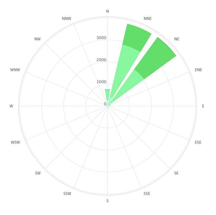Duranteestatemporadaelingresodel solsedaporelNorte,porloquelas fachadas mas expuestas son Noroeste yNoreste