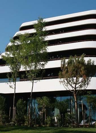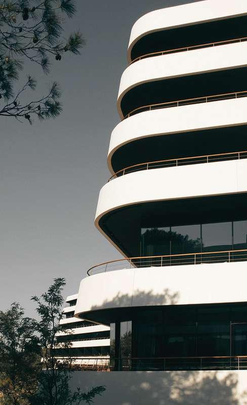 La forma de la estructura es en forma de Y, con líneas horizontales dominantes que forman la fachada, además de terrazas protectoras con un diseño que evoca la imagen de b d b l dos.