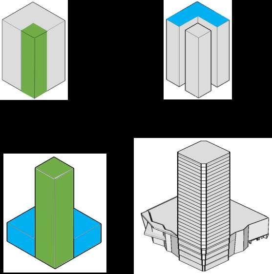 La torre esta representada por el paralilepipedo alargado con detalles de forma orgánica en las esquinas que generan movimiento dinámico al edificio , su escala depende mucho de su ubicación
