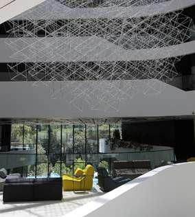 En el centro del hotel en forma de Y se encuentra el vestíbulo principal el cual conecta a los espacios comunes con todos los niveles