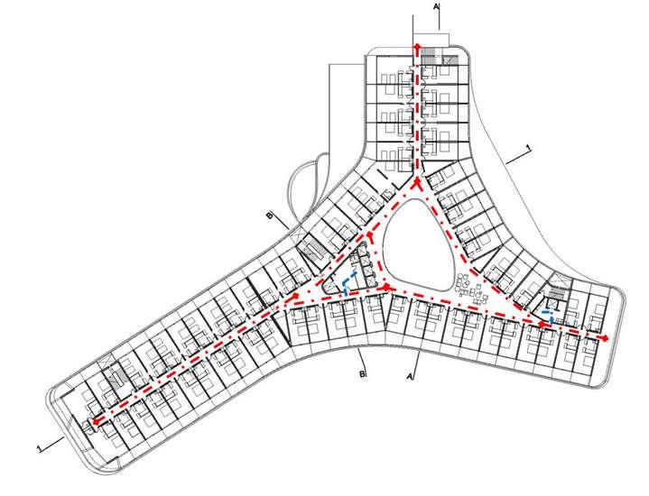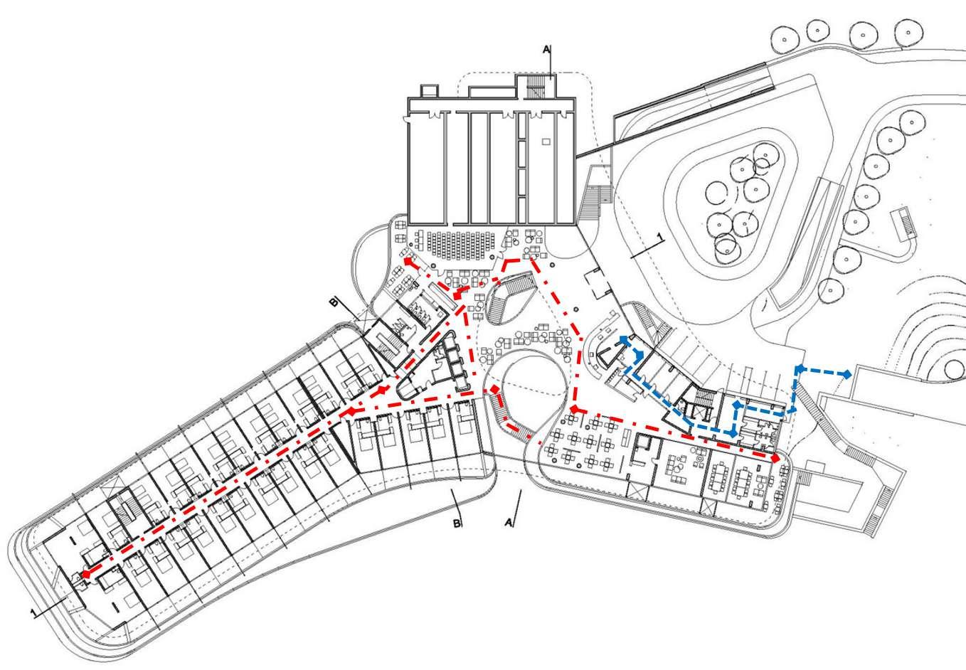 Este itinerario es utilizado principalmente por el personal de servicio que labora en el hotel, y se puede apreciar que no se sobrepone al trayecto principal.