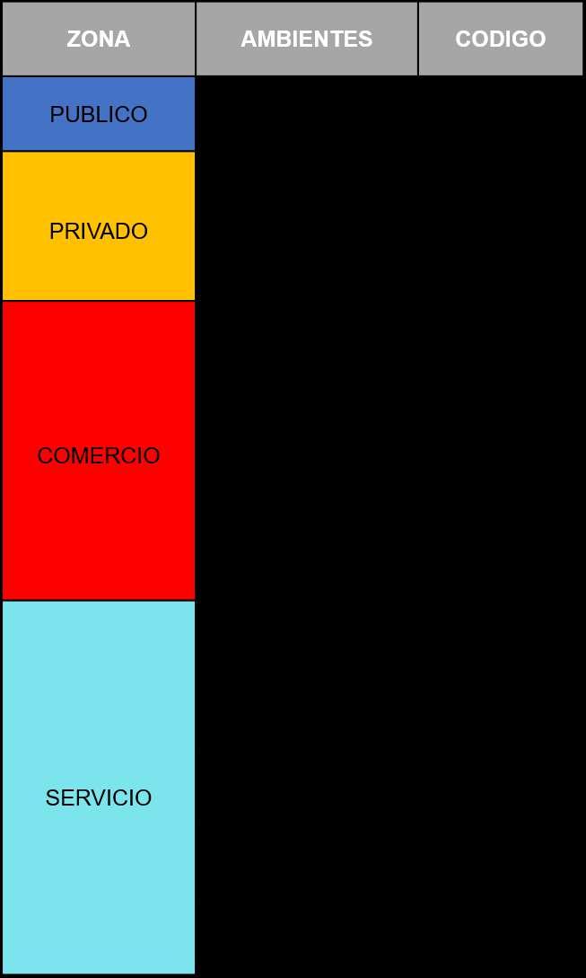 Los espacios se observan como áreas irregulares ya que no tienen forma, los tamaños de todos los espacios varían según las características y funciones que se realizan en estas.