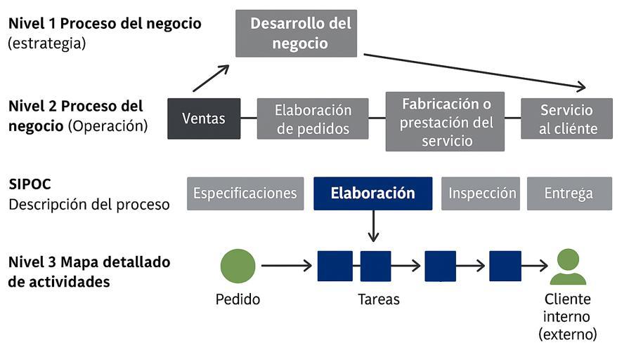 • Actividades del proceso. Se describen las actividades del proceso en diagramas.