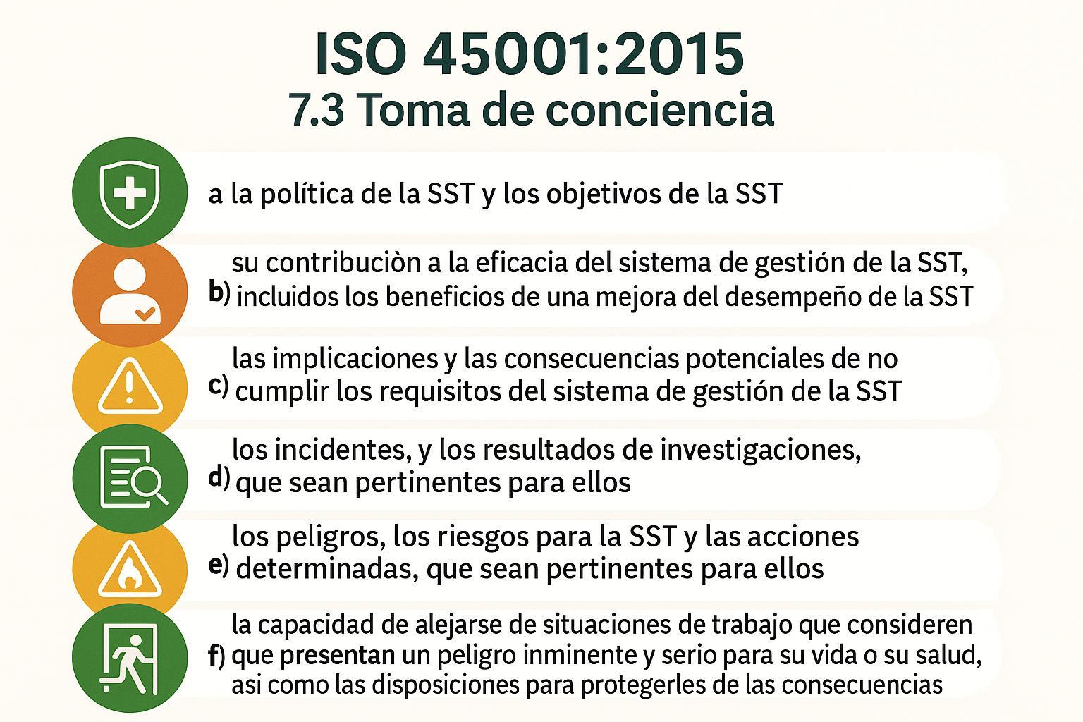 Conciencia de la política de SST, riesgos, controles, beneficios de mejora, y consecuencias del incumplimiento