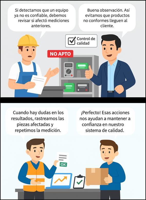 Laorganizacióndebedeterminarsilavalidezdelosresultadosdemediciónpreviossehavisto afectada de manera adversa cuando el equipo de medición se considere no apto para su propósitoprevisto,ydebetomarlasaccionesadecuadascuandoseanecesario.