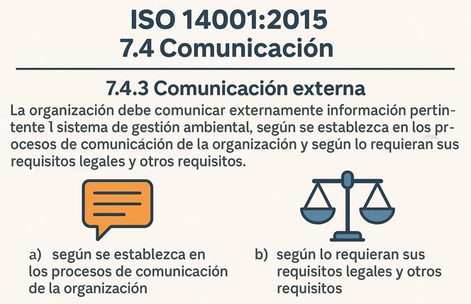 La organización debe comunicar externamente información pertinente al sistema de gestión ambiental, según se establezca en los procesos de comunicación de la organización y según lo requieran sus requisitos legales y otros requisitos.